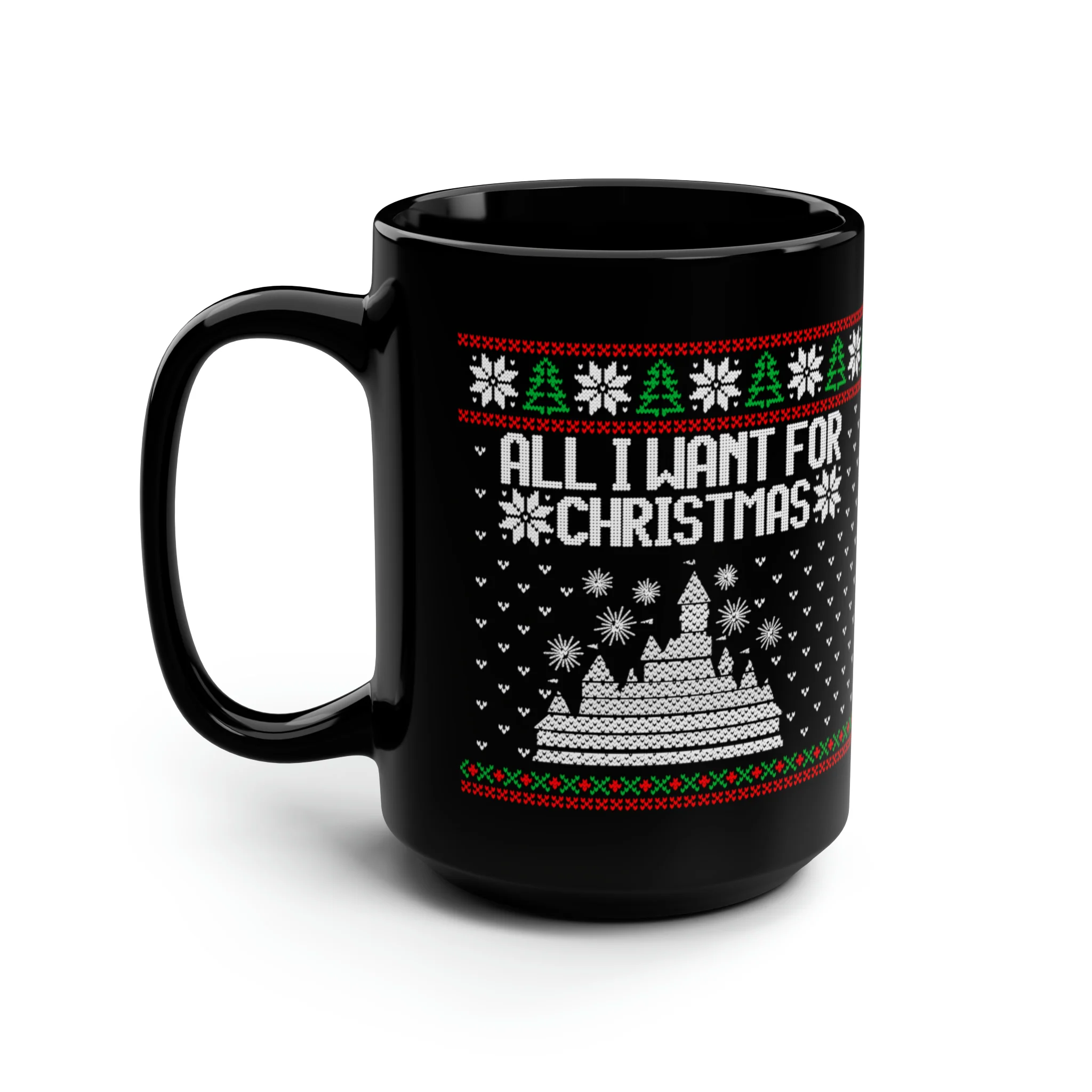 All I Want for Christmas Disneyland Ugly Sweater Black Mug