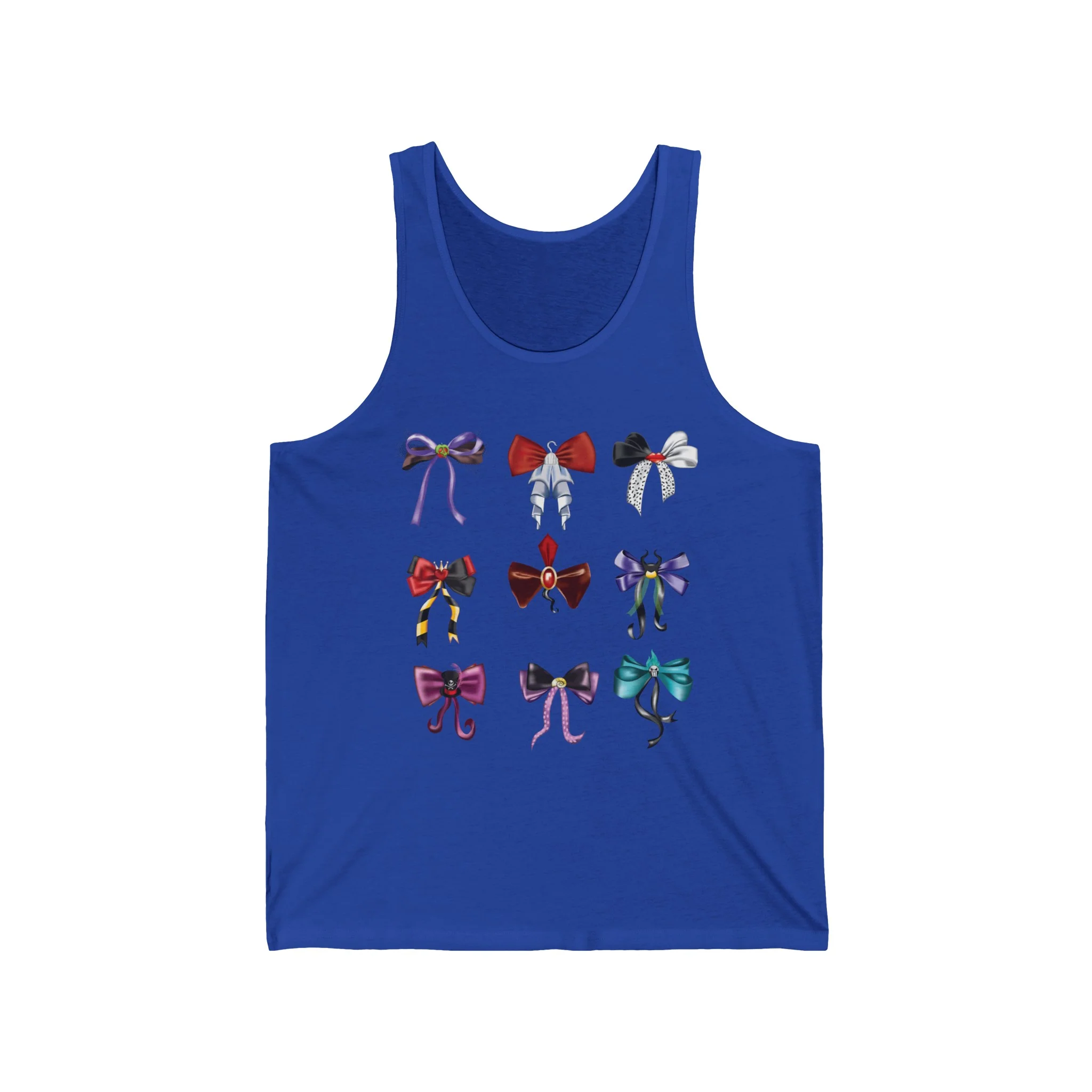 Unleash your inner baddie with our Villain-Inspired Bows! These bows are perfect for adding a touch of mischief to your everyday look with this unisex tank.