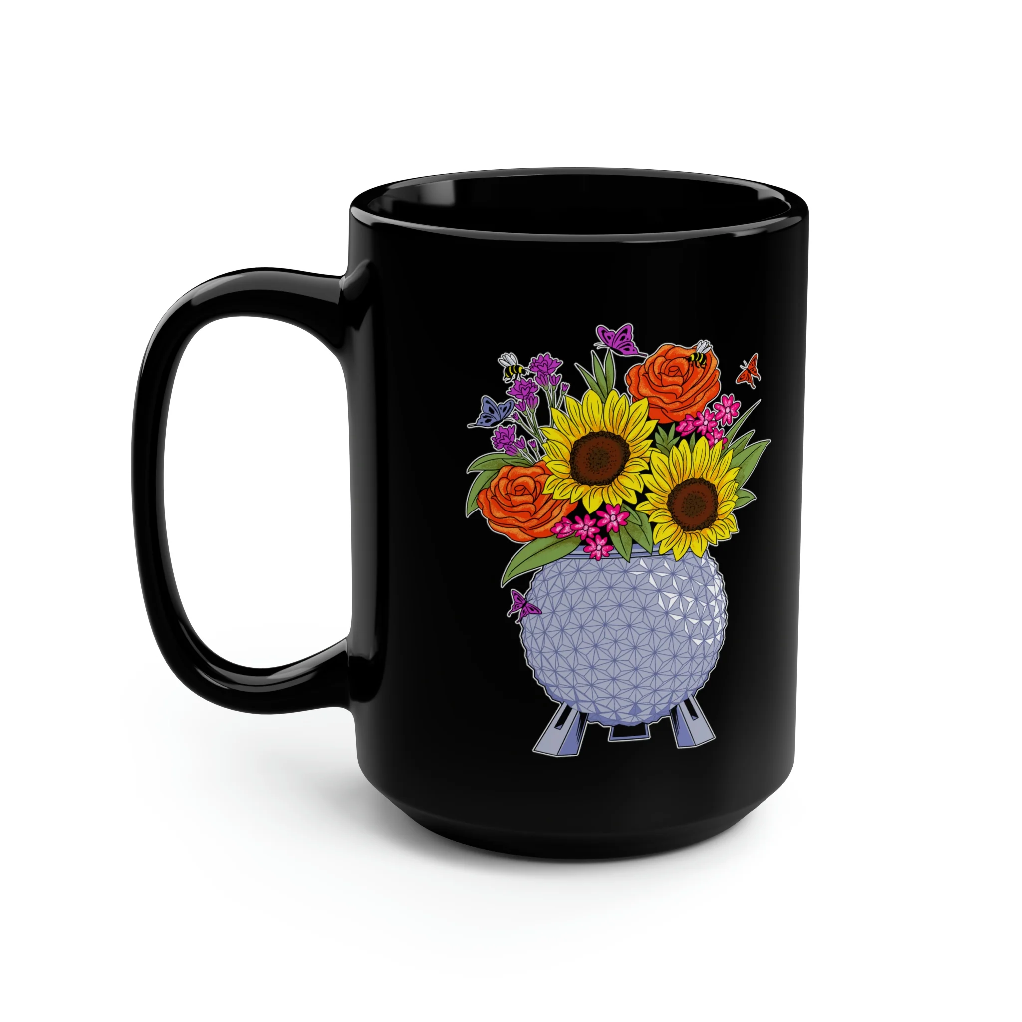 -70%EPCOT Spaceship Earth Flowers Black Mug—