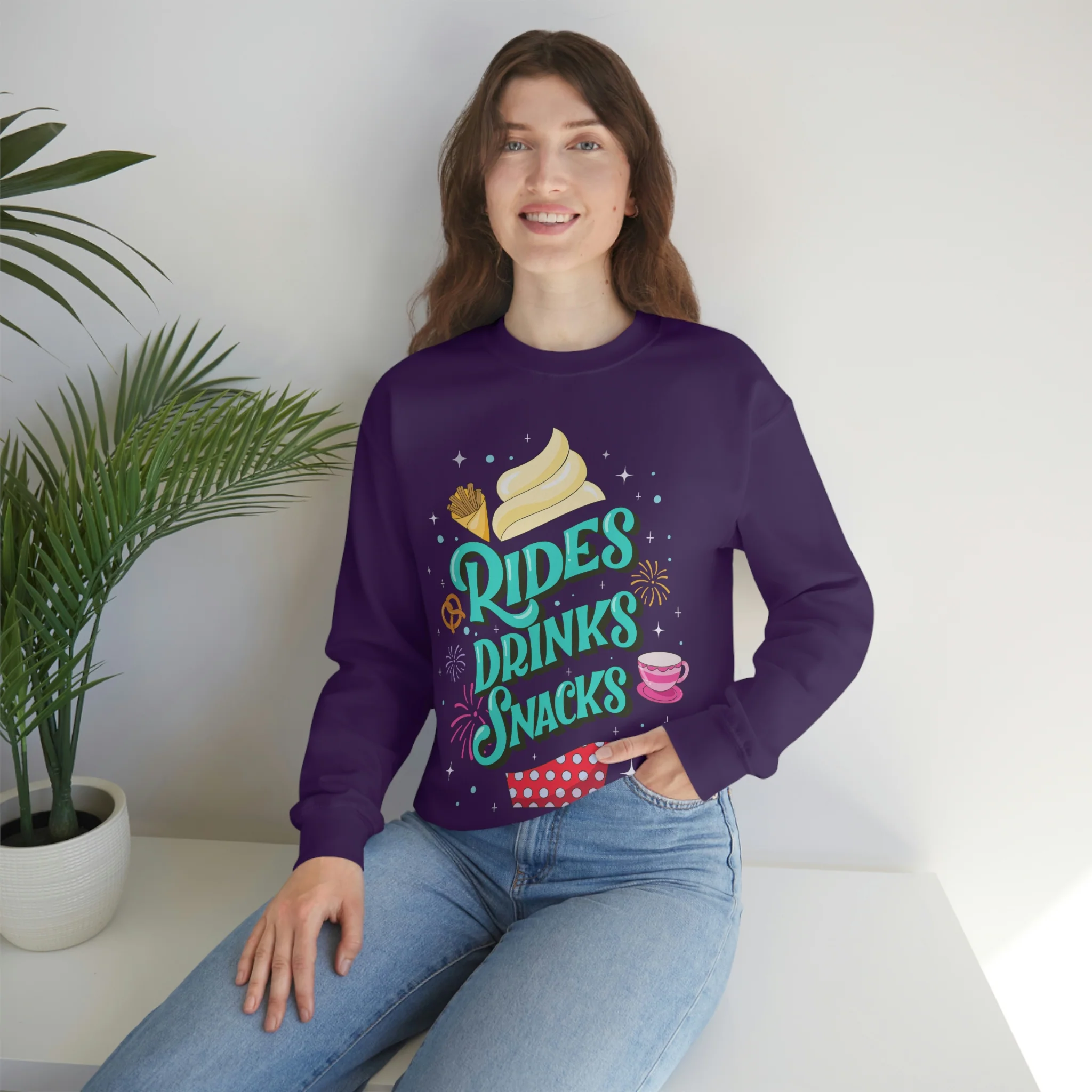 Rides, Drinks, Snacks - Adult Crewneck Sweatshirt