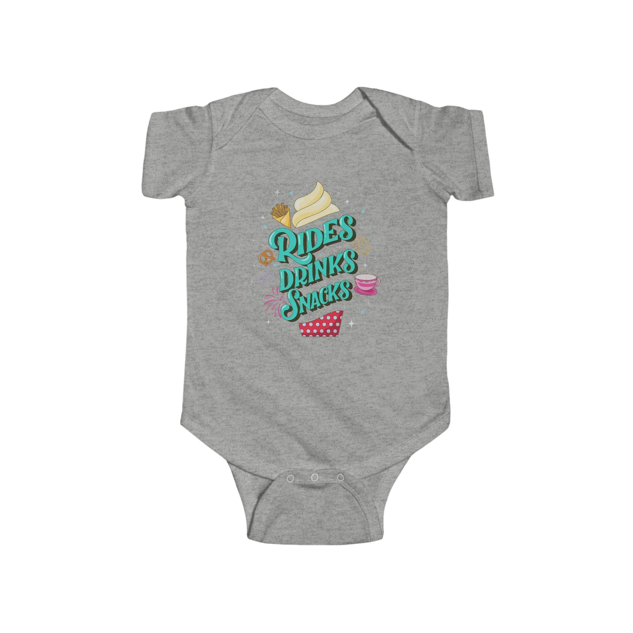 Rides, Drinks, Snacks Baby Onesie