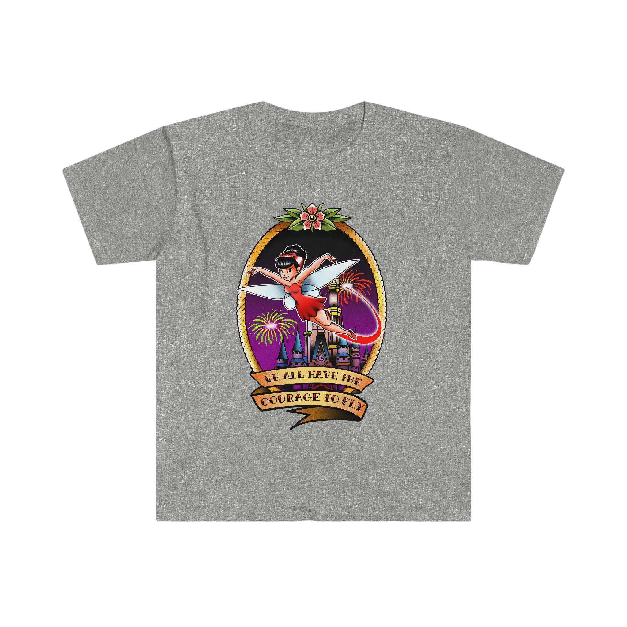 You deserve a happily ever after! Celebrate your courage to fly and the return of our beloved fireworks show, Happily Ever After, with our vintage tattoo Tinkerbell-inspired shirt. Great for everyday wear or on your perfect Magic Kingdom day at Walt Disney World.